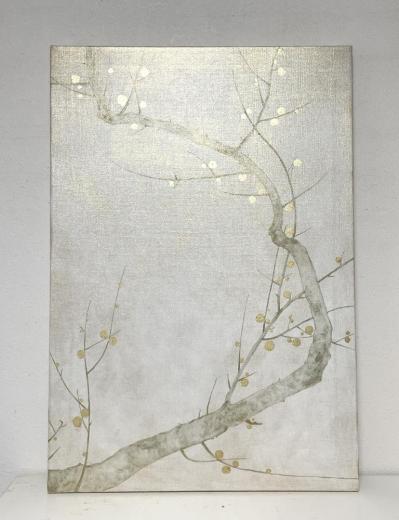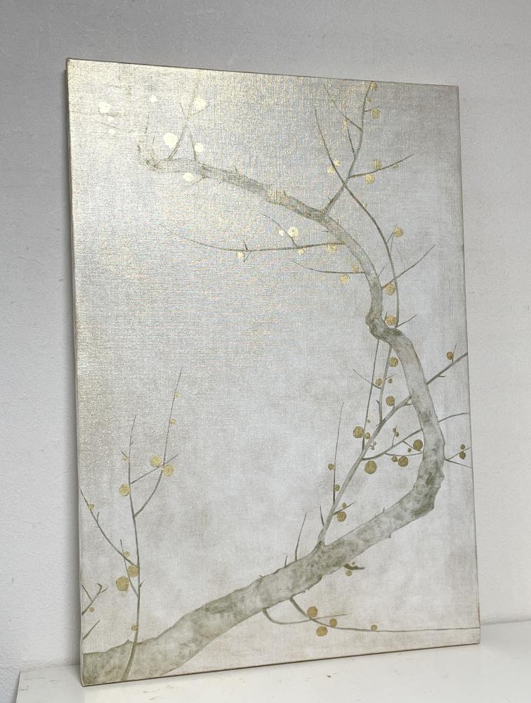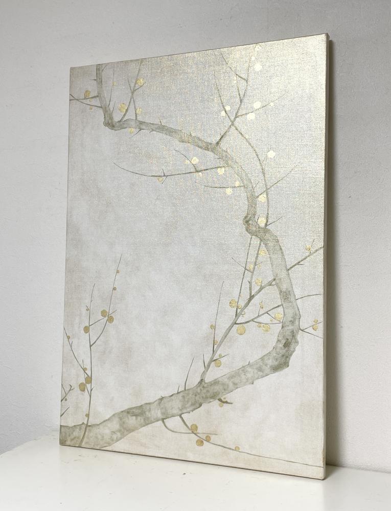 キャンバスに箔と油彩で梅の枝の絵を描きました。