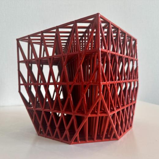 錯視、遠近法、モアレなどの視覚的構造を用いながら、見ることの仕組みそのものを攪乱し、存在と非存在、現実と虚構、構築と想像のあいだに潜む曖昧な境界を浮かび上がらせる。彼の作品は、私たちが世界を理解するために拠って立つ「構造」を可視化し、それを問い直す装置として機能する。