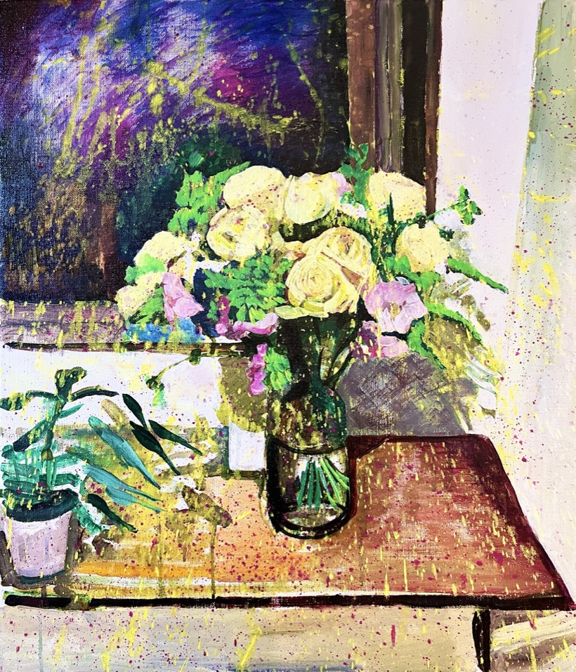 モチーフ選びは、輪郭を借りるだけで特別に何かを表そうとか意味を持たせることはしたくないと思ったのだ。なぜそうなったかというと、自分自身がその様な描き方を望まなかったからだ。直球で何かものに向かい、直接的に風景やら日常の一場面を描く方がそれこそ自分らしいと思った。しかし、幼少期にポールセザンヌの絵を見て「特別だ」と強く感じた。ただの風景画や人物を描く画家にはなりたくないと思った。今でも現代の絵を描こうと画家の探求は続いている。”