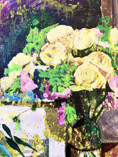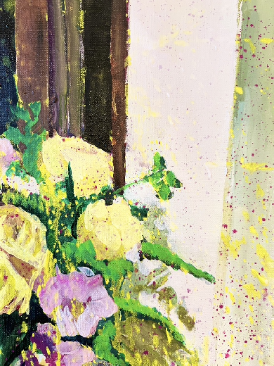 ある人には、ノイズになるでしょう。またある人には、心地よいものになるでしょう。私は色々なことを想像し、時に不安を抱きながら、それでも自分が信じた方向へと突き進み絵を完成させる他にありません。あの時の記憶、あの時の感覚、あの時の時間は、今この時の一瞬一瞬であり刹那的なものであります。しかし、私はその一瞬一瞬を捉えようとして、心情を揺れ動かしながら絵を描いていくのです。"