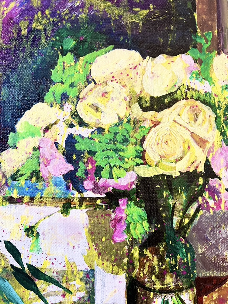 絵と向き合う時、私はただひたすらに自身の直感を信じます。気持ちいいと思う形や色、作品のモチーフさえも、全て直感で選び取るのです。
