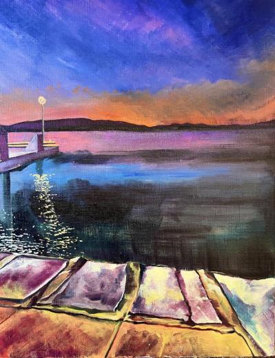 Teshima's boat dock at night