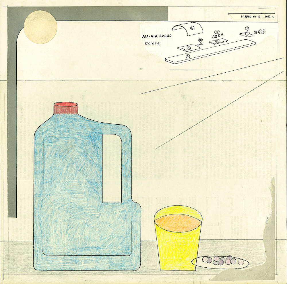 ドローイング、コラージュ、厚紙、木パネル