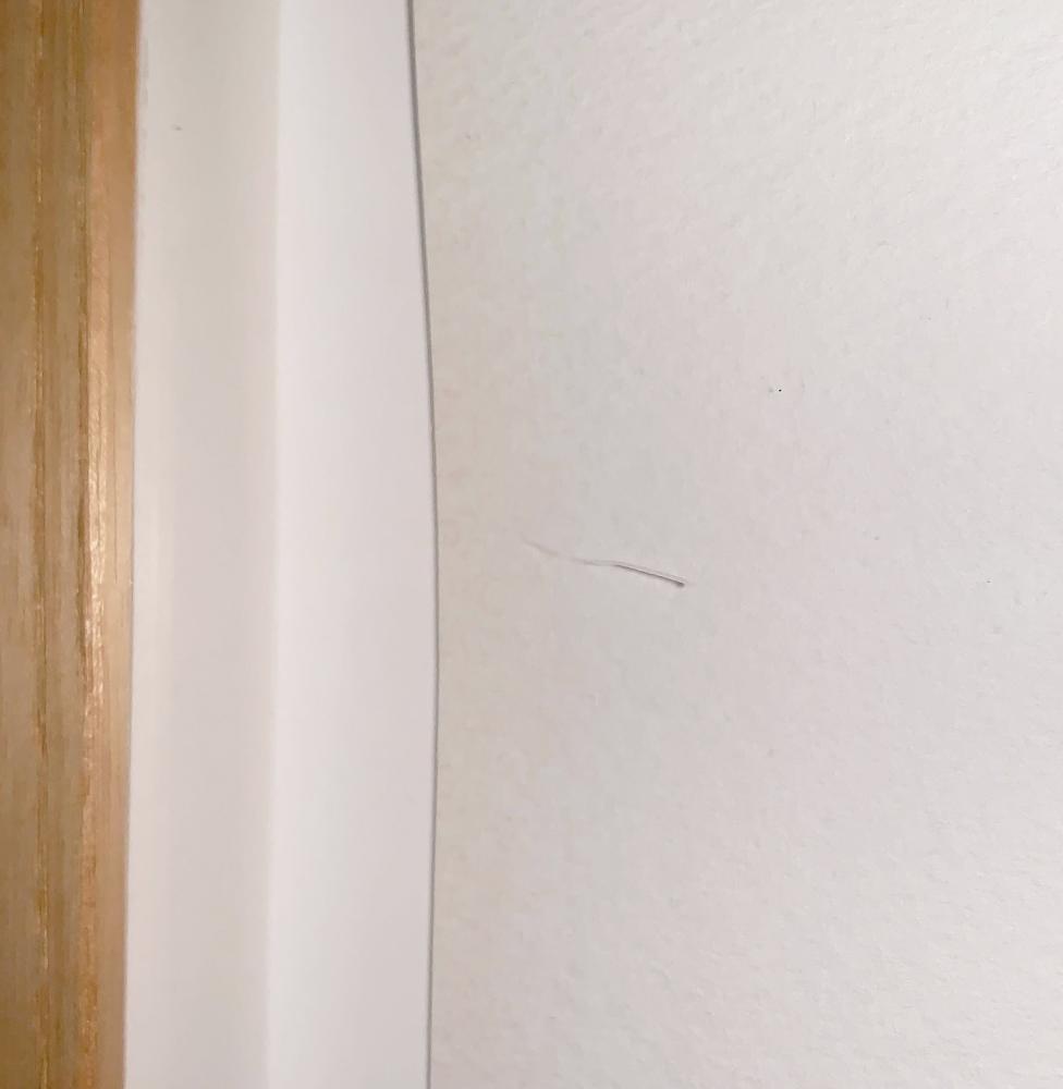 作品の縁に経年変化が見られ、軽い波打ちや透明アクリル板に微細な傷がありますが、全体的には良好な状態です。The edges of the piece show signs of aging, with slight waviness and minor scratches on the clear acrylic plate, but overall it is in good condition.