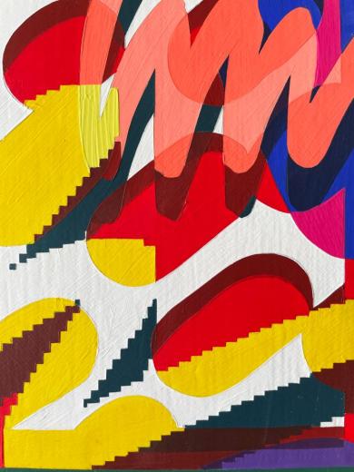 Drawing on his background in graphic design, he began experimenting with digital drawing, where he came to view the acts of making and erasing lines as fundamental gestures in painting. From this exploration, he has developed an abstract practice rooted in digital brushwork, deepening his interest in the perception and interplay of colors.