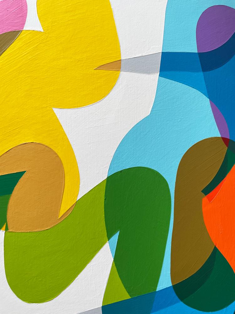 Drawing on his background in graphic design, he began experimenting with digital drawing, where he came to view the acts of making and erasing lines as fundamental gestures in painting. From this exploration, he has developed an abstract practice rooted in digital brushwork, deepening his interest in the perception and interplay of colors.