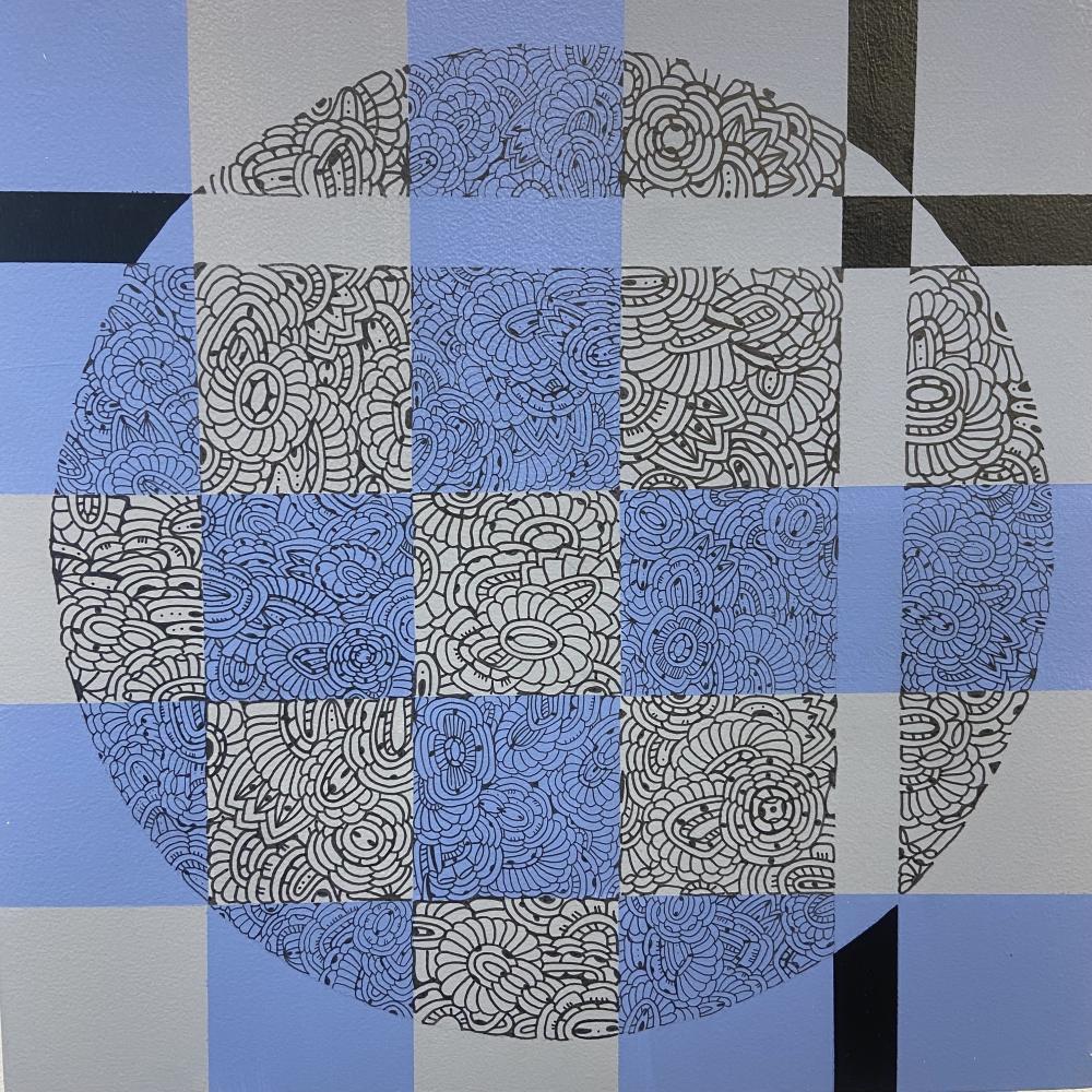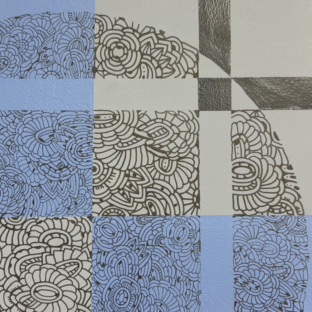 本作は、彼女の複雑なペン画世界を、模様、パターンや抽象的な塗りの筆使いと融合させた近作カラーシリーズから自薦の一作です。巧緻な仕掛けを含みながらもグラフィックな彩りと楽しさがあり、巨細に見て楽しめる新しい境地を示しています。