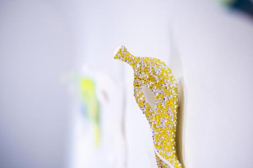 私はしばらく悩んで、作品にポップアートの文脈を組み込むことにした。「映える」姿へと作り変えられた作品は、転ぶ前に気づくことでリスクを回避できる存在となる。つまり「映える」縁起物や厄除けという情動の文化を纏うことで、現在の市場へ迎合させ、そのことで批評性を作品に内包させたいと考えたのだ。