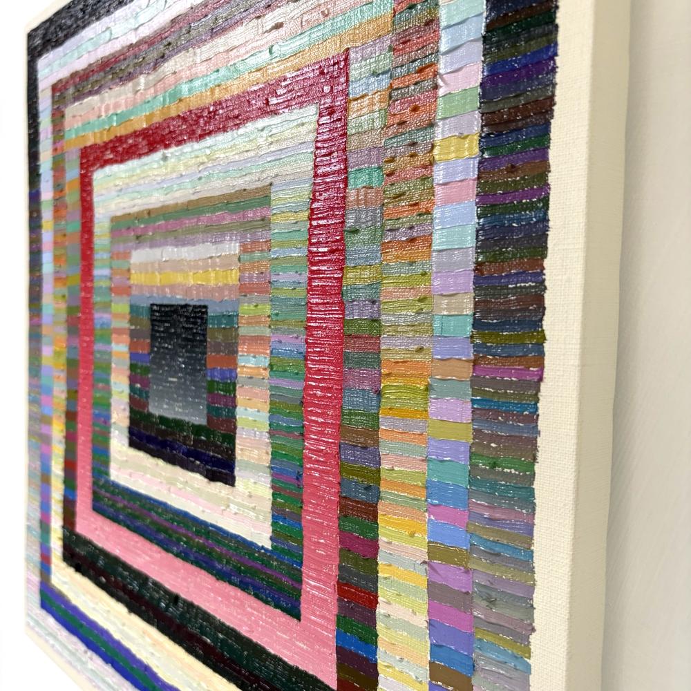 「lines in lines」は一本ずつ描いた線の集まりでできた形が入れ子になっています。