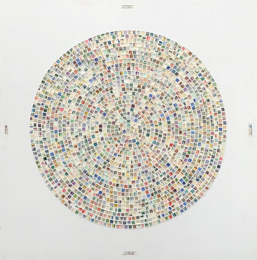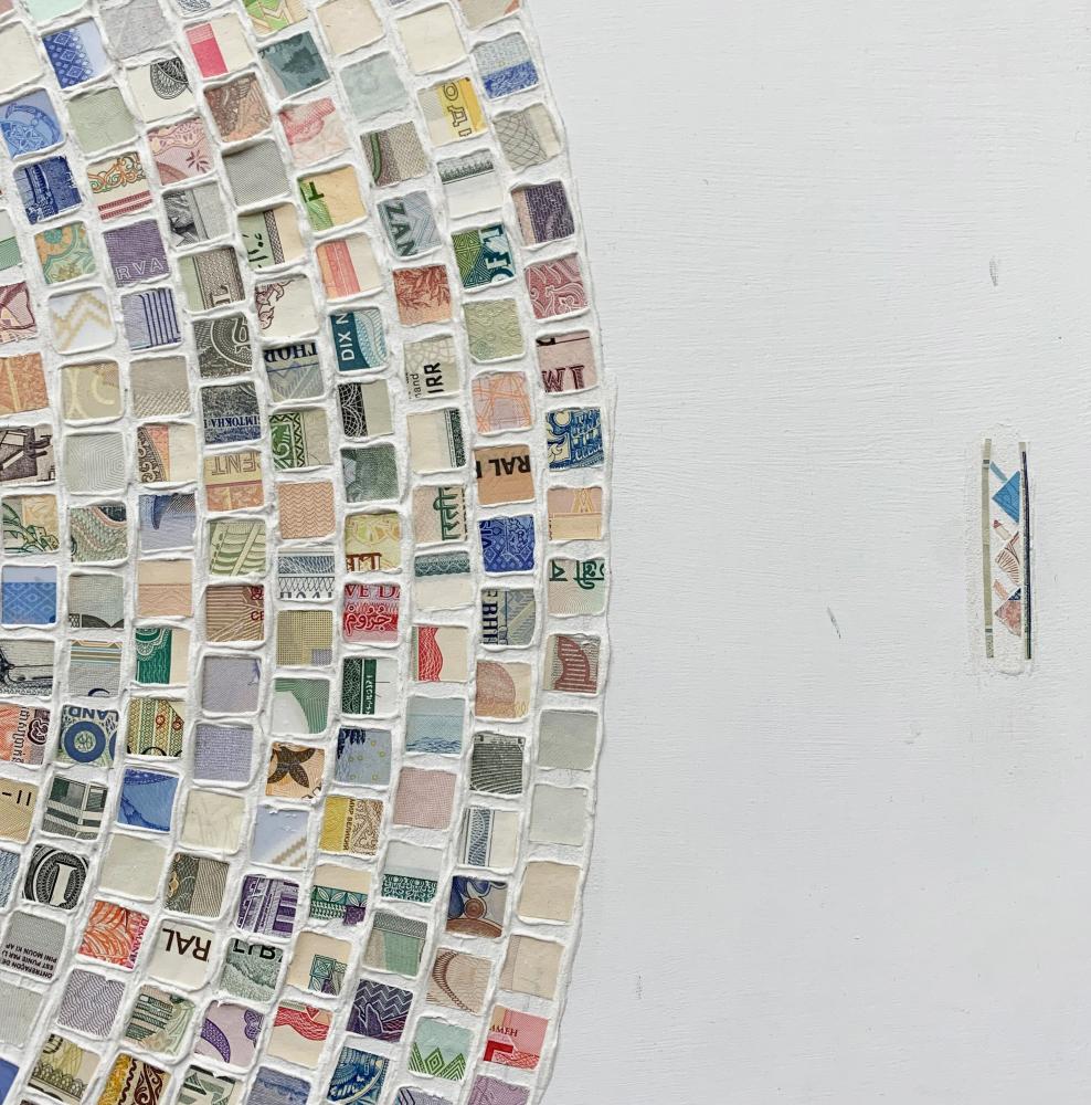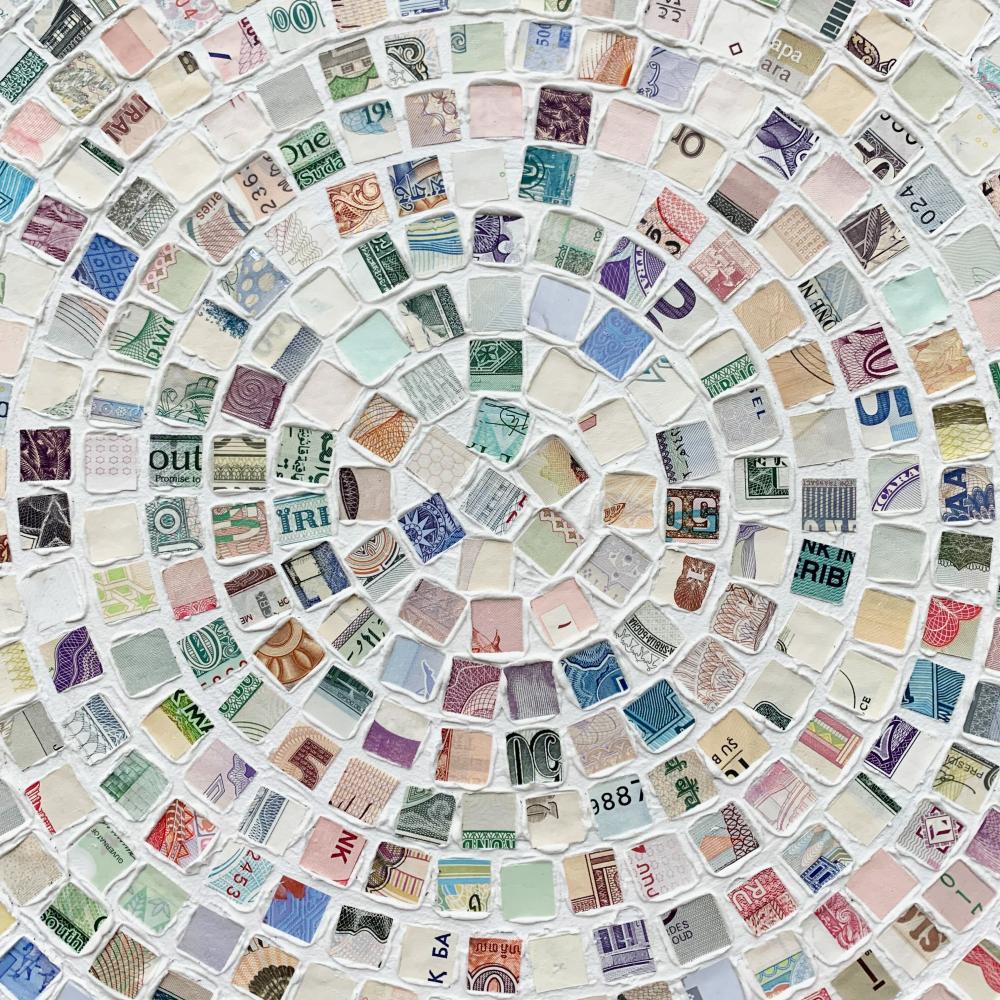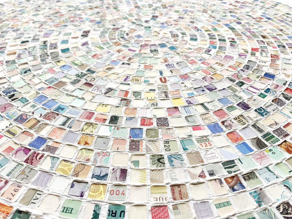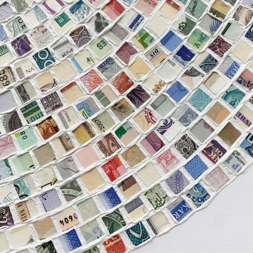 100ヵ国紙幣・オートマティックペインティング・アクリル・モデリングペースト・木製パネル