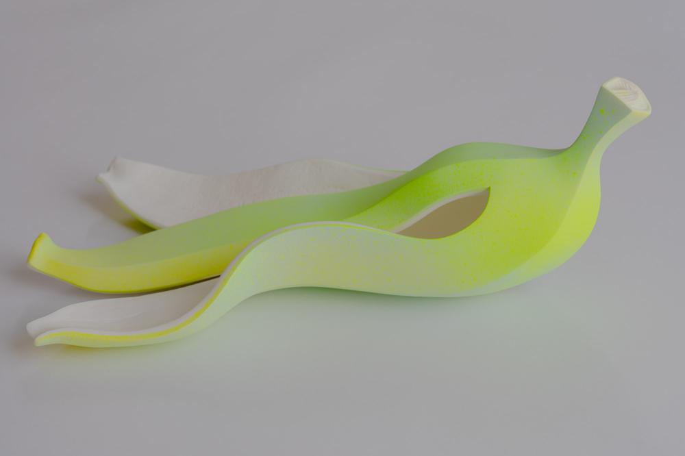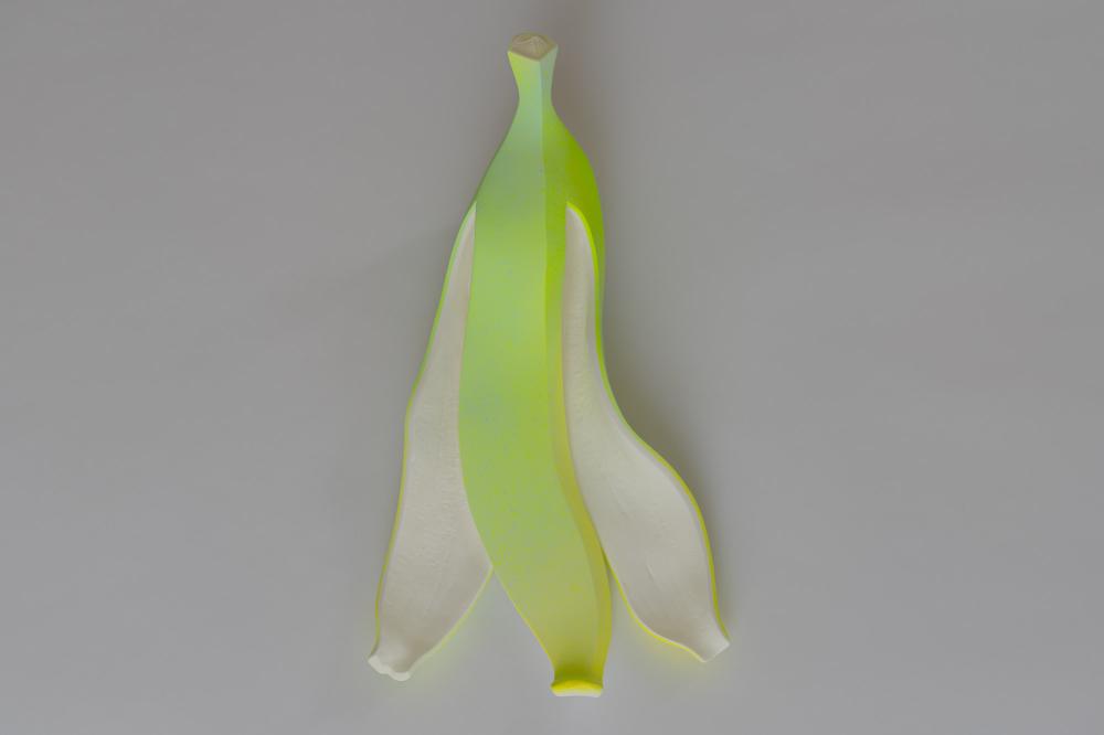 私はこれまで、現代資本主義を巨大なコメディとして捉え、作品を発表してきた。動機は単純だ。「私たちは豊かさとリスクを交換しているのではないか」という疑いを、チャップリンやキートンといった無声喜劇映画の小道具としての「バナナの皮」と、バナナそのものの市場の成り立ちから引用しているのだ。??冷戦終結後、国家や企業、あるいは自治体から個人まで、すべての経済主体は利益最大化を求められ、世界はそこでおこなわれるあらゆる交換関係を疑わないようデザインされ直した。?しかしその結果、未来の選択肢は狭まり、やがて悲劇的な結末を迎えるのではないか――だとすればそれは喜劇以外の何ものでもない。??だが、この動機では作品が売れないのだ。エリートは交換の構造に以前から気づいているし、喜劇の面を見に来た人々は「バナナの皮」の意図を聞いて戸惑い、去ってゆく。??私はしばらく悩んで、作品にポップアートの文脈を組み込むことにした。「映える」姿へと作り変えられた作品は、転ぶ前に気づくことでリスクを回避できる存在となる。つまり「映える」縁起物や厄除けという情動の文化を纏うことで、現在の市場へ迎合させ、そのことで批評性を作品に内包させたいと考えたのだ。??しばらくしてこの作品をSNSに載せると、みるみるフォロワー数は増えていった。?その経緯は、私たちが現在「映えることによる統合」を強いられていることを、改めて突きつけてきた。??私たちの社会は、セクシー、ラグジュアリー、バイオレンス、コメディ、そしてヘイトといった情動によってのみ成立する共同体へ移行しようとしている。それは過去の政治哲学や社会学が紡いできた言語による統合を解体し、私たちの精神を自然状態へと巻き戻す試みではないのか、、??ふと、レヴィ=ストロースの『悲しき熱帯』『野生の思考』を思い出した。彼は未開部族の観察を通じて、文明社会の内側に居る筈の我々もまた、主体的な意思を持たず、構造の内側で相変わらず野生の思考をしていることを明らかにした。??文明と文化の装飾でもあるアートが、私たちの野生の思考を露わにするならば、それは再び喜劇である。 そして幸運にも、私の作品は「バナナ」の姿をしていた。??結局、私たちは集団としては何も考えていないのだ。?今は、人類史が悲劇的な結末に向かわないことを願って、バナナの皮は映える姿をしている。