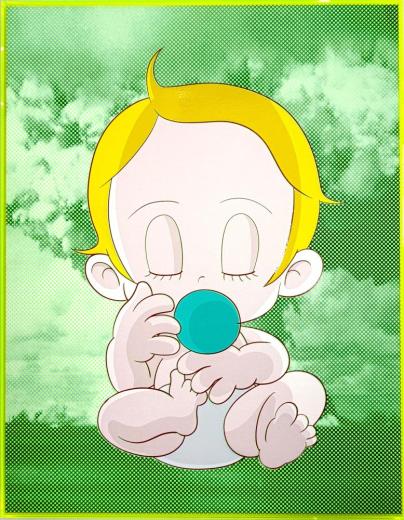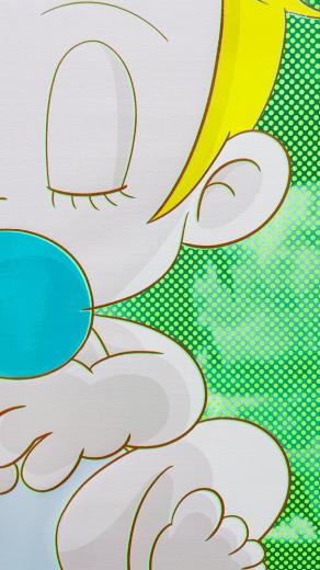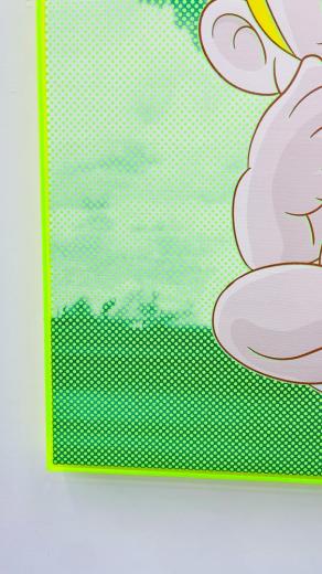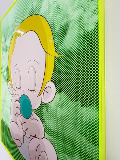キャンバスにインクジェットプリント、部分グロス加工、部分ネオンカラー