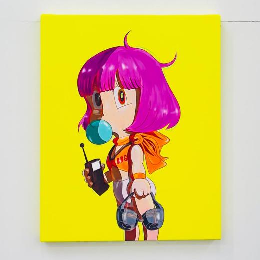 キャンバスにインクジェットプリント、部分グロス加工、部分ネオンカラー
