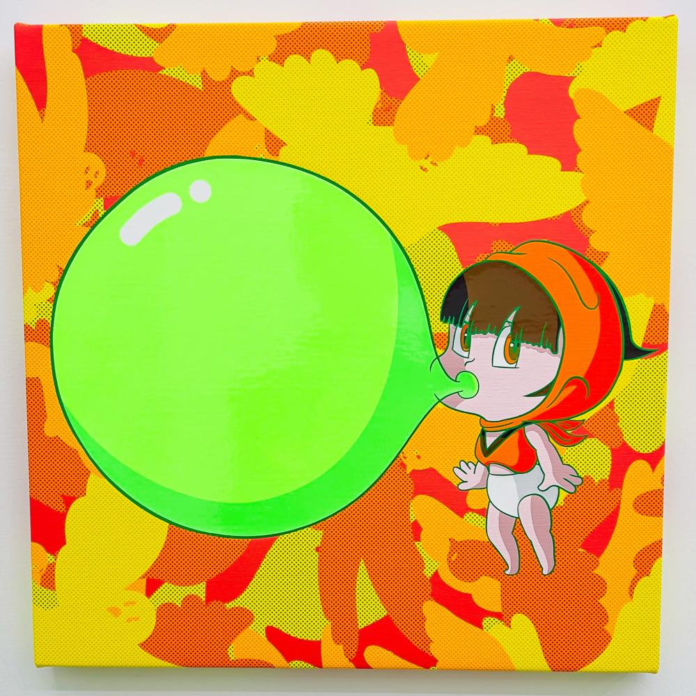 キャンバスにインクジェットプリント、部分グロス加工、部分ネオンカラー