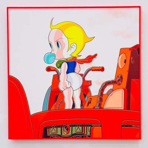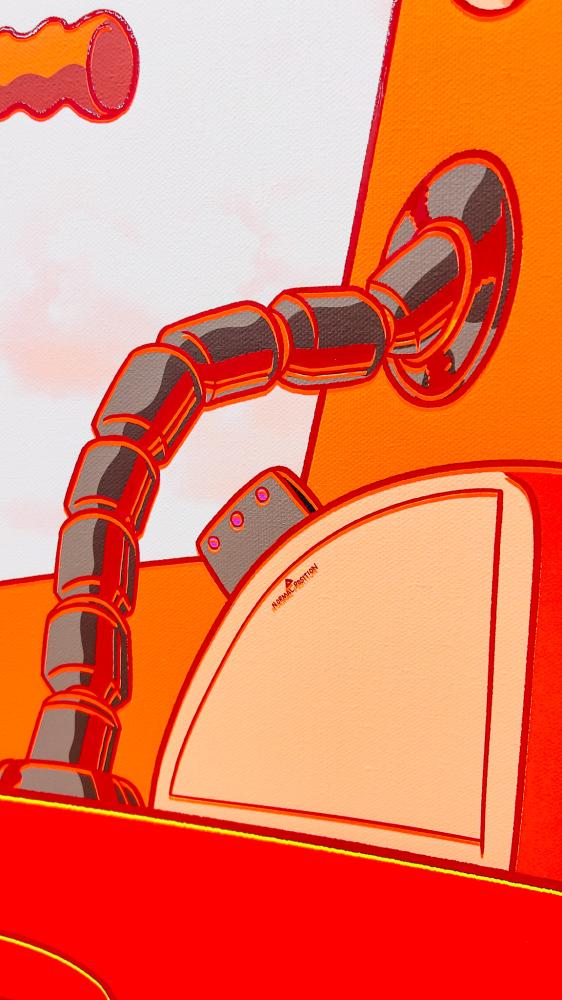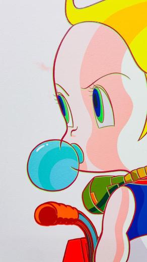 キャンバスにインクジェットプリント、部分グロス加工、部分ネオンカラー