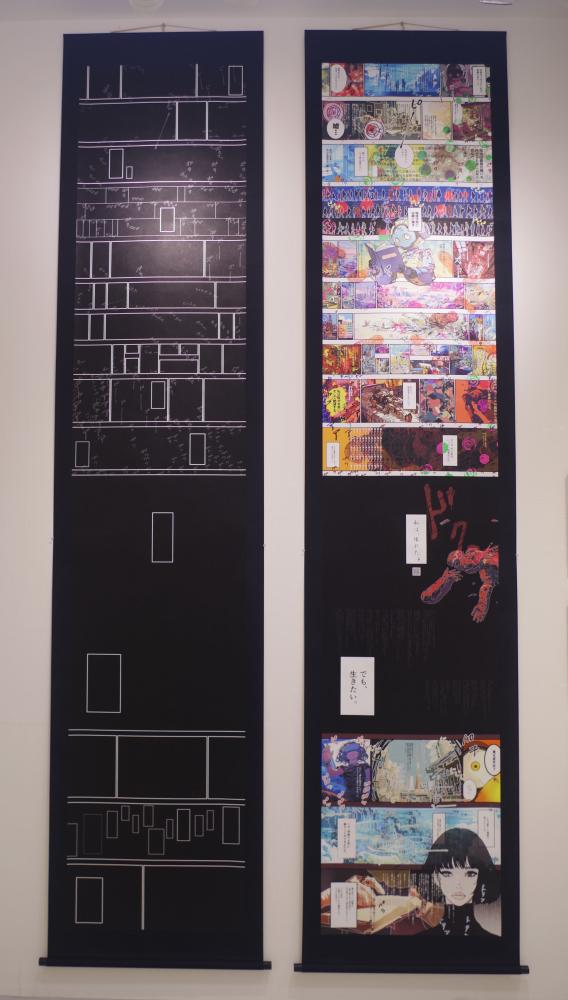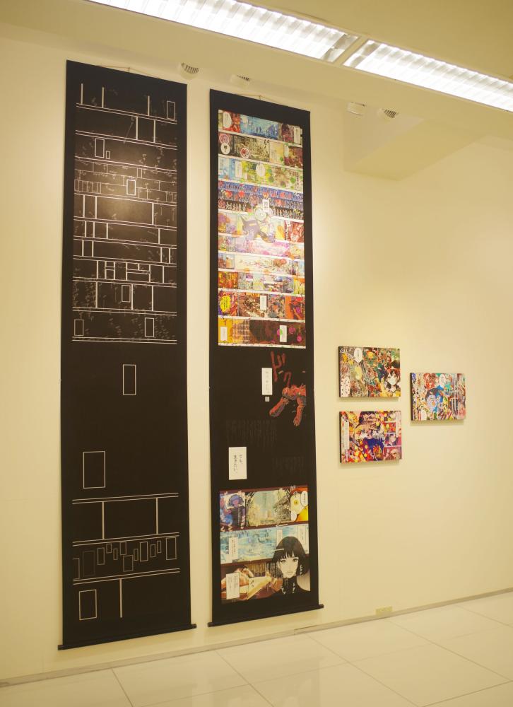 As a sister work to the manga-like piece that contains the story, this work removes the function of time from the “panels” that normally express temporal change in manga, reducing them to mere patterns.