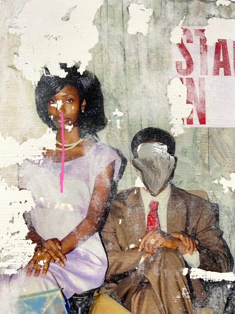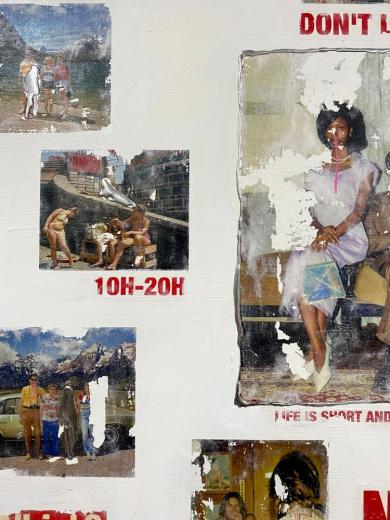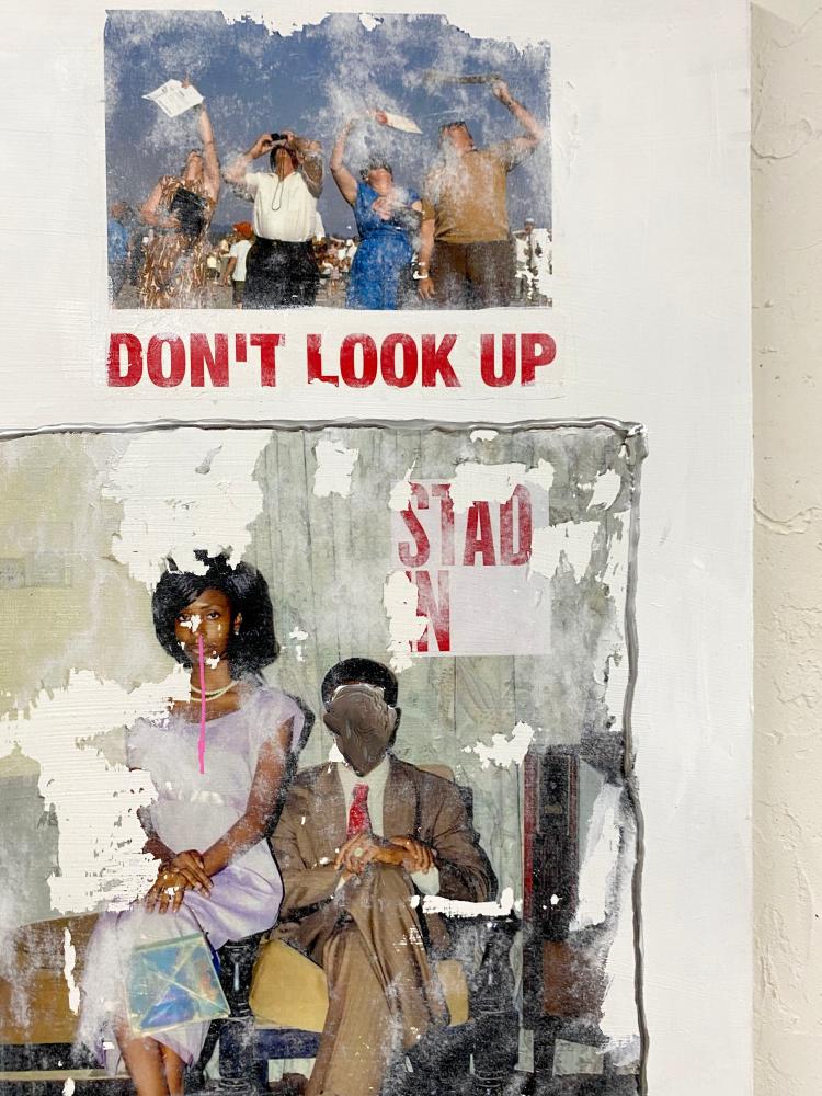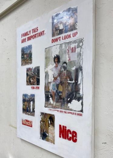 本作は、近作からの自薦の1作。メディウム転写とアクリル絵具を使い、普遍的なテーマを諧謔味で包んだbuggy氏らしい作品です。
