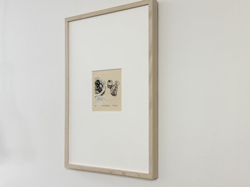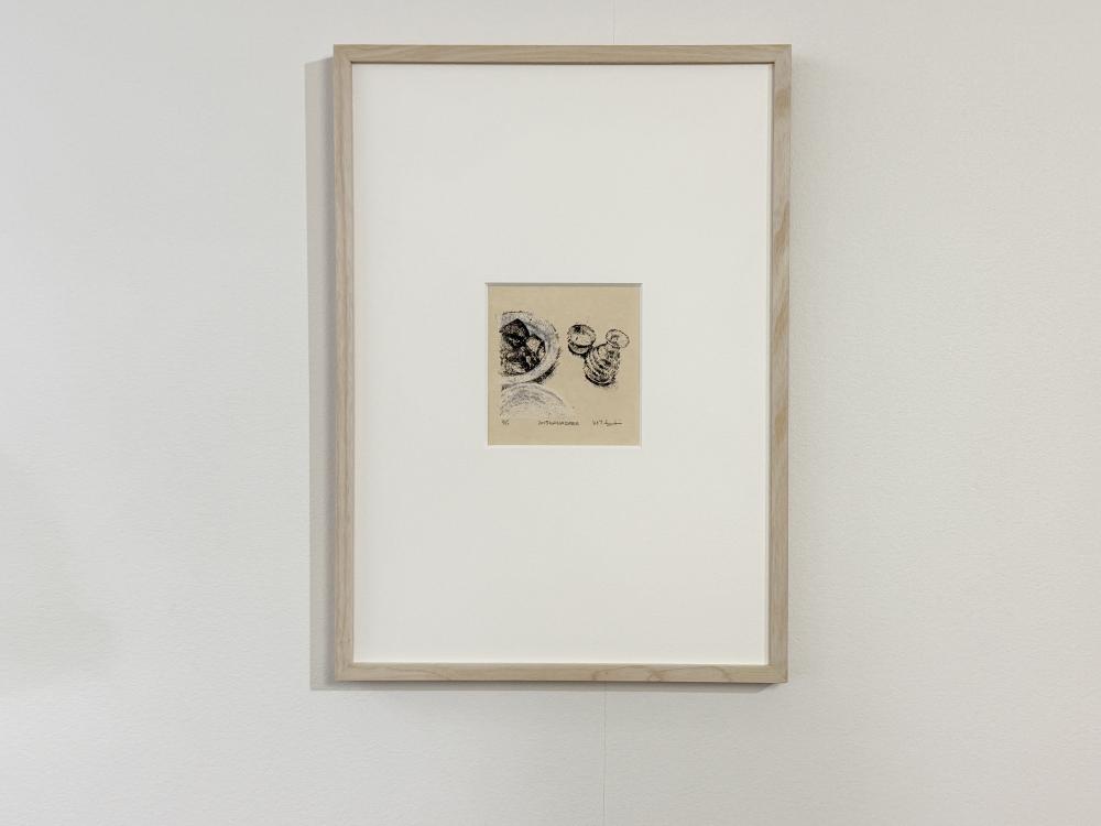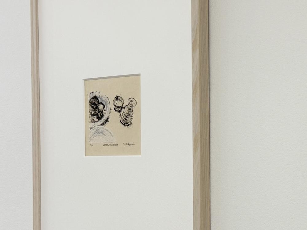 本作は、器シリーズから派生したシリーズの一作。彼女が出会った器と色を写し取った、謄写版アートならではの繊細な味わいが魅力的です。