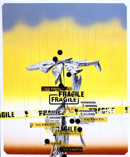 コットン紙に水彩、アクリル、コラージュ