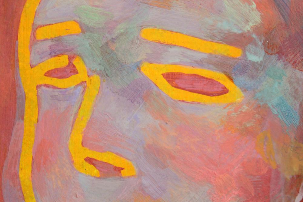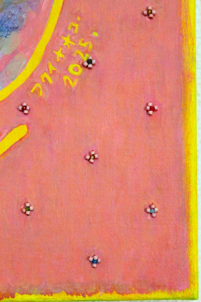 oil on canvas, bead embroidery