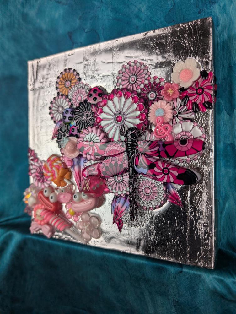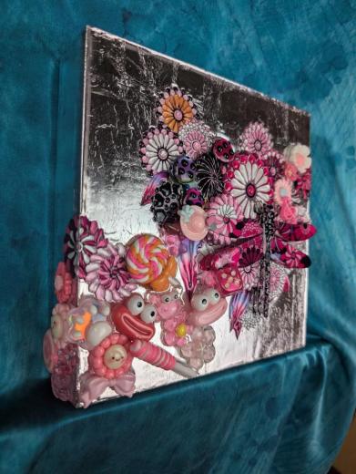 3D artworks produced by KAERU TSUKINO are born from the combination of various materials such as metal, using his original digital illustration as blueprint. Then they are layerd in coating acrylic transparent resin and finished with glitters and rhinestones.The appearance that different materials show their individual charm and create a unique world - it expresses the fusion of diversity and interculturalism in this world. Also, KAERU feels that the world we exist is composed of "invisible layers". This is the one of significant reasons for making multi-layerd works using transparent resin.The "invisible layers" is the fluctuation of various consciousness and emotions of living creatures that are silently piled up in the world regardless of awareness. We are living on the earth made of such unstable and invisible emotions. In a land dominated by thin emotions, people's souls are exhausted.