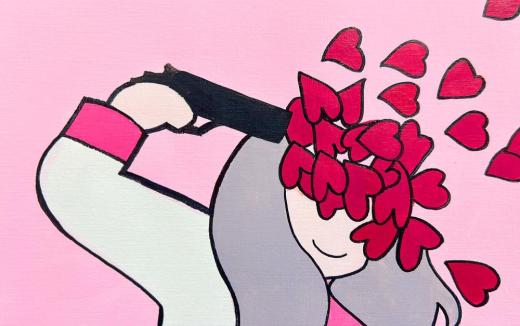 2022年から描いている「memento mori」という作品と同じ構図作品を3つに展開させた作品の中の一つ。