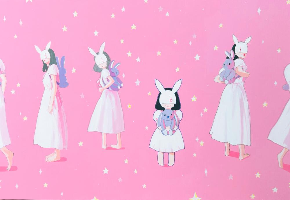 This artwork explores the question of how that phenomenon affects our hearts and identities, portrayed through the girls drawn in different styles.