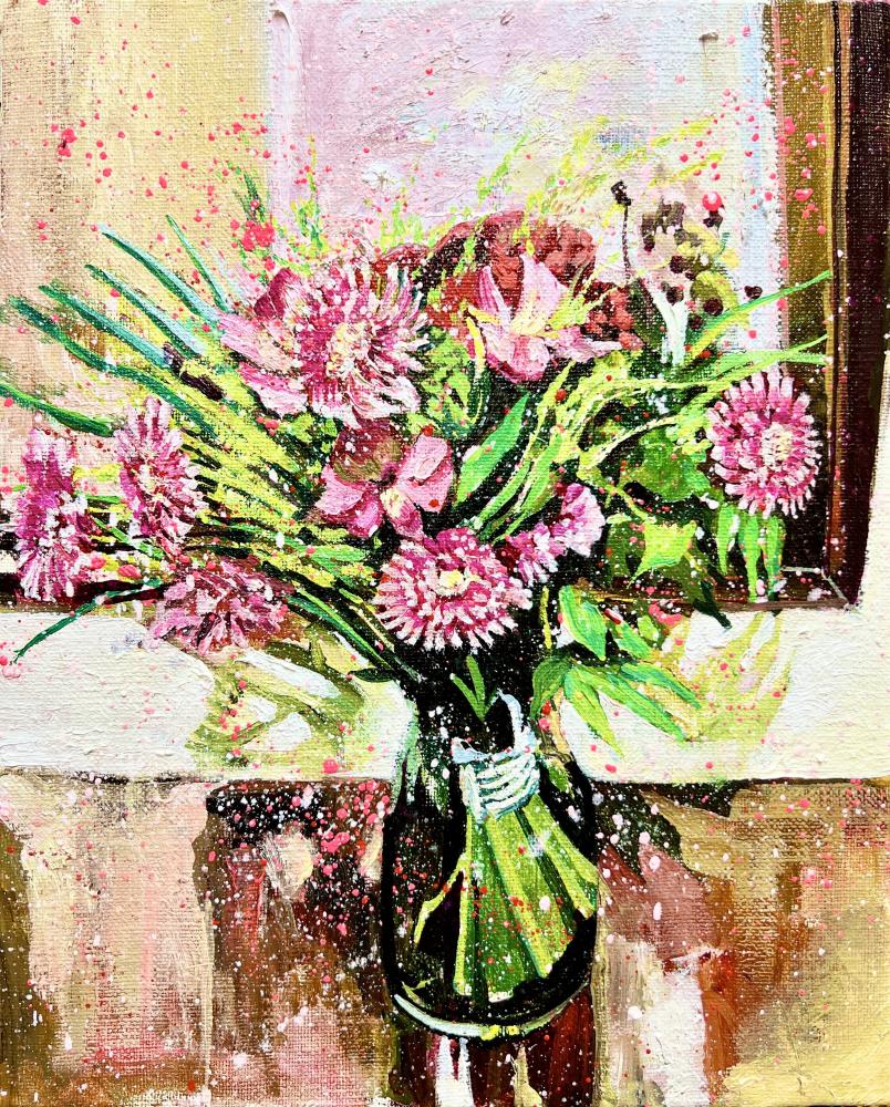 絵と向き合う時、私はただひたすらに自身の直感を信じます。気持ちいいと思う形や色、作品のモチーフさえも、全て直感で選び取るのです。