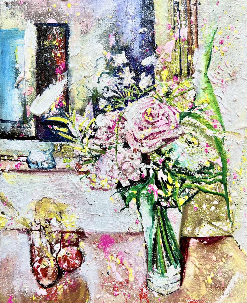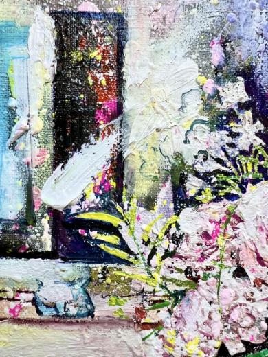 絵と向き合う時、私はただひたすらに自身の直感を信じます。気持ちいいと思う形や色、作品のモチーフさえも、全て直感で選び取るのです。