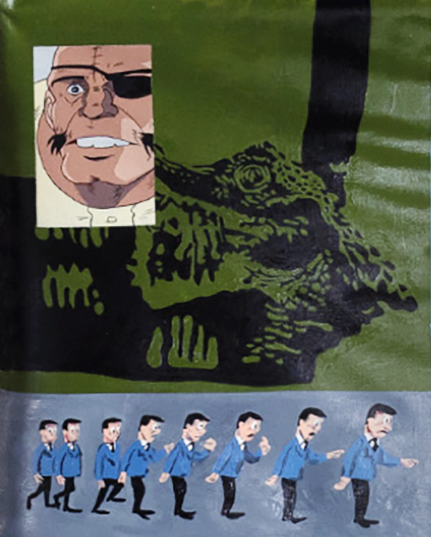古い映画の1シーンや古本やネットで拾った画像、Aiで生成したデータなどからサンプリングした素材をコラージュのように組み合わせ、原初的なメディウムであるキャンバス上の油彩やアクリル画などに置き換えてデジタルとアナログの間で摩擦を起こし、時空の歪みのような新たな心象風景として描き出していく。「なんの目的意識もなく面白そうだと思うイメージを集めて繋ぎ合わせていくうちに思いもよらない絵となり、人間がコントロールのきかない“わからなさ”で行動していることの表れを作品に落とし込んでいる。