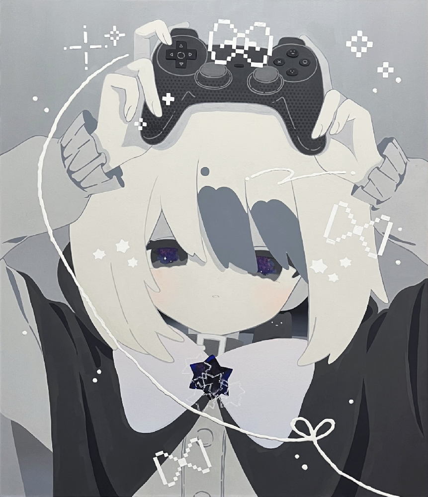 アクリル、油彩、UVプリントなどの混合技法を使用し、夢で会えるともだちをイメージしたイマジナリーフレンドを描きます。
