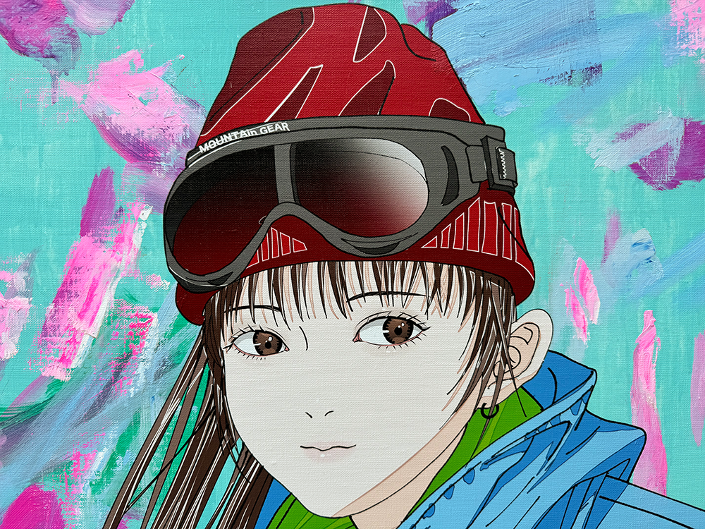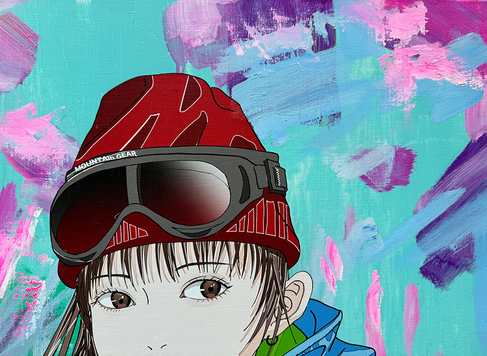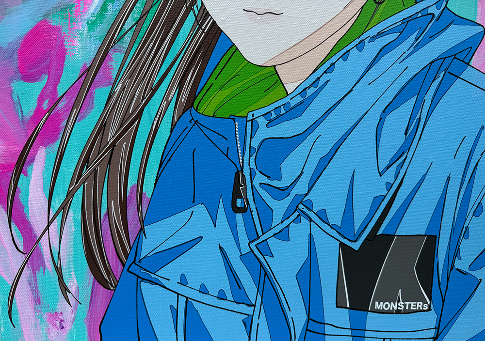 油彩画のマチエール表現と、UV印刷のフラットさの相反する表現が混在する作品であり、古来から存在する油彩画と先進的な表現であるUV印刷の融合を図った作品になります。