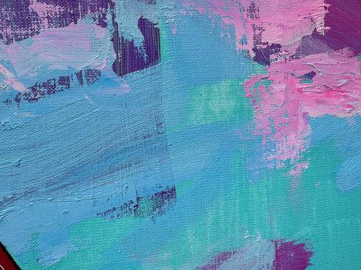 油彩で抽象画を描き、その上からUV印刷を施した作品になります。