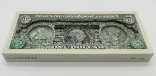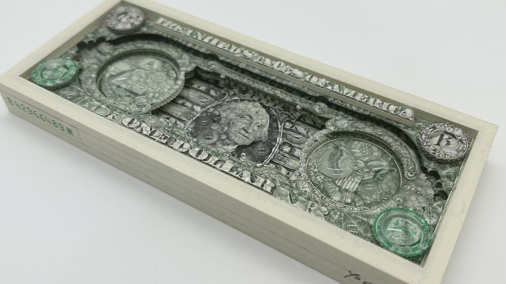 シャドーボックススタイル マネーコラージュ / アメリカドル紙幣、レジン、シリコン、フォームボード、