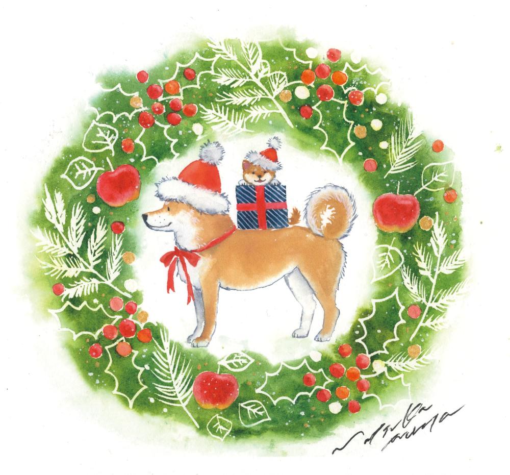 本作は、クリスマスイメージで描かれた一作です。心温まる雰囲気と目を奪われるほどユニークな画想の組み合わせが人気。アクティブコーポレーションのグリーティングカード用に描き下ろした原画です。