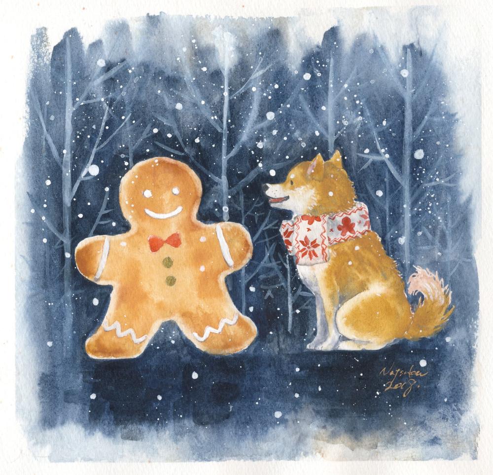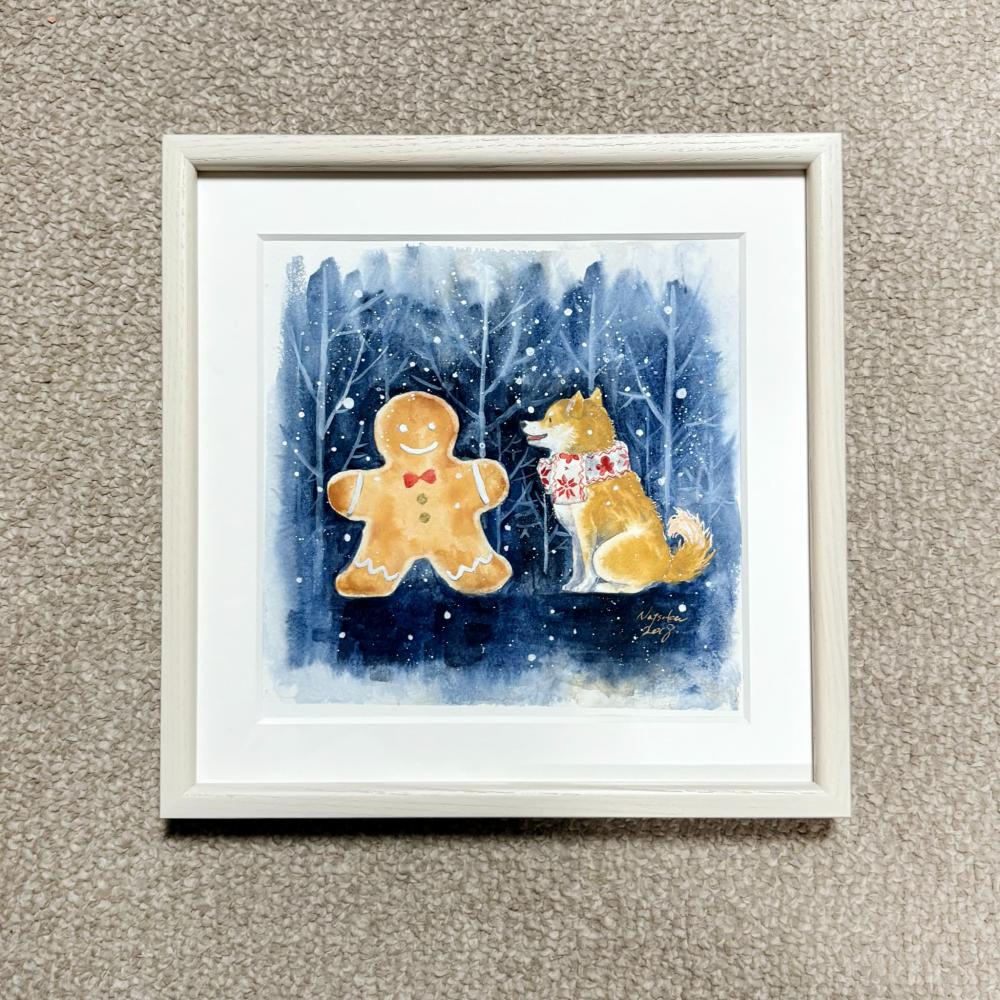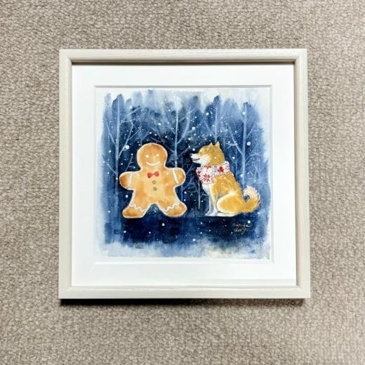 本作は、クリスマスイメージで描かれた一作です。心温まる雰囲気と目を奪われるほどユニークな画想の組み合わせが人気。アクティブコーポレーションのグリーティングカード用に描き下ろした原画です。