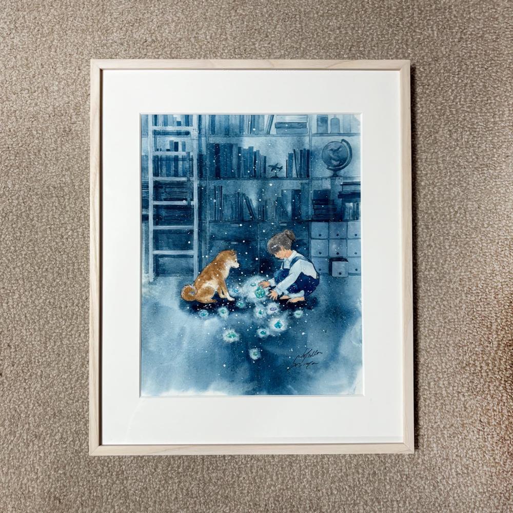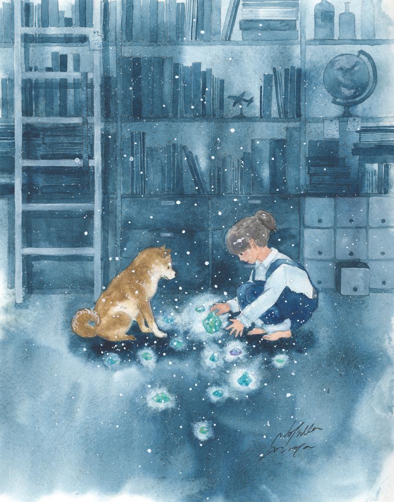 おもに森の生き物を題材にファンタジックな水彩画を発表し続けている村田夏佳作氏。童話本や絵本のワンシーンを思わせる場面構想力は、透明水彩の独特な滲みとマスキング技法とを駆使することで、より洗練された境地に達しています。動物イラストレーションの王道を承けつつ、自然の陰りや発光感まで豊かに表現できる余白の巧みな使い方が印象的。可愛らしいだけではなく、鉱石や食べ物と動物との組み合わせも試みるなど、グラフィカルでシュールな着想の面白さにも特徴があります。