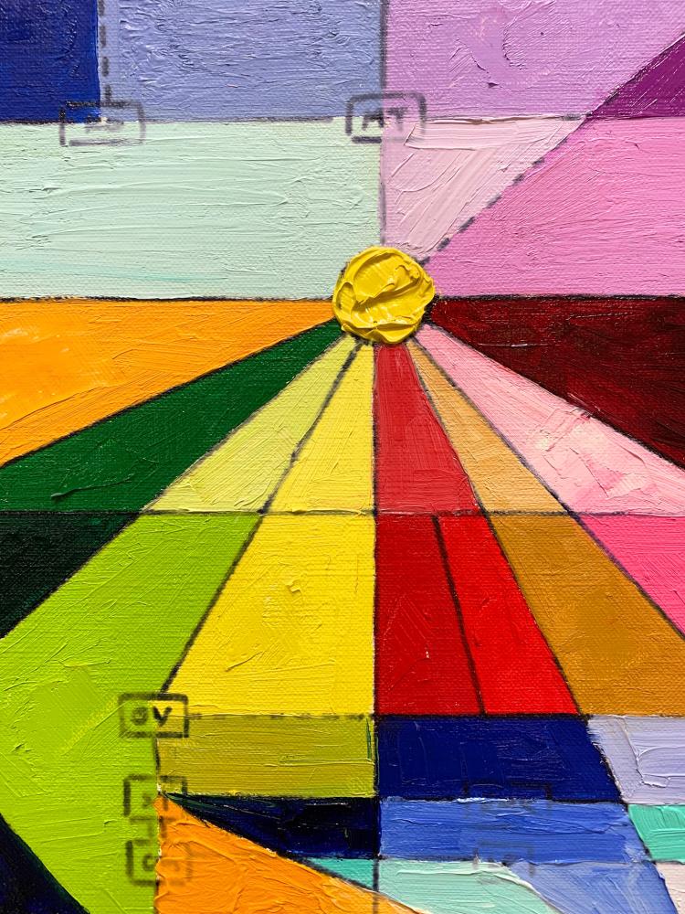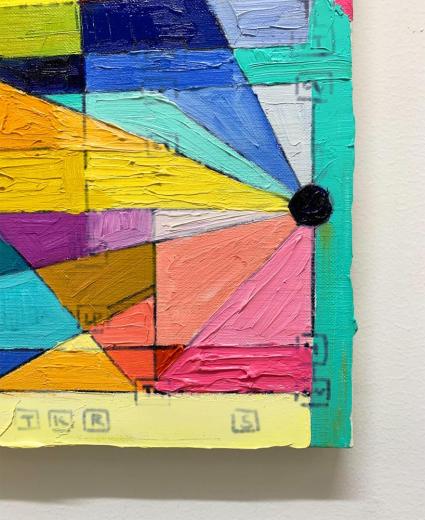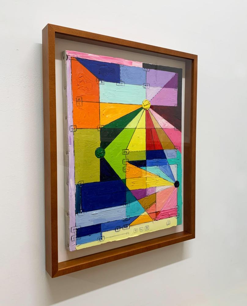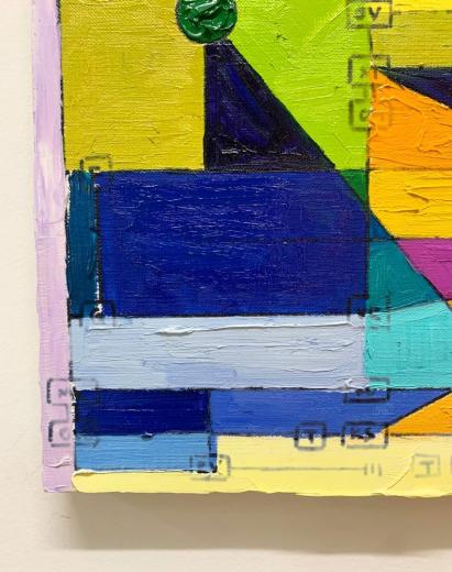 初期より制作プロセスを「コード」として捉え、自らが構築したアルゴリズムを用いることで、絵画の根源を探る独自の表現を展開。グラフ構造を起点とした図式的なドローイングから、幾何学的かつ有機的な形態を生成し、抽象的な色面と線が複層的に絡み合う作品を生み出している。