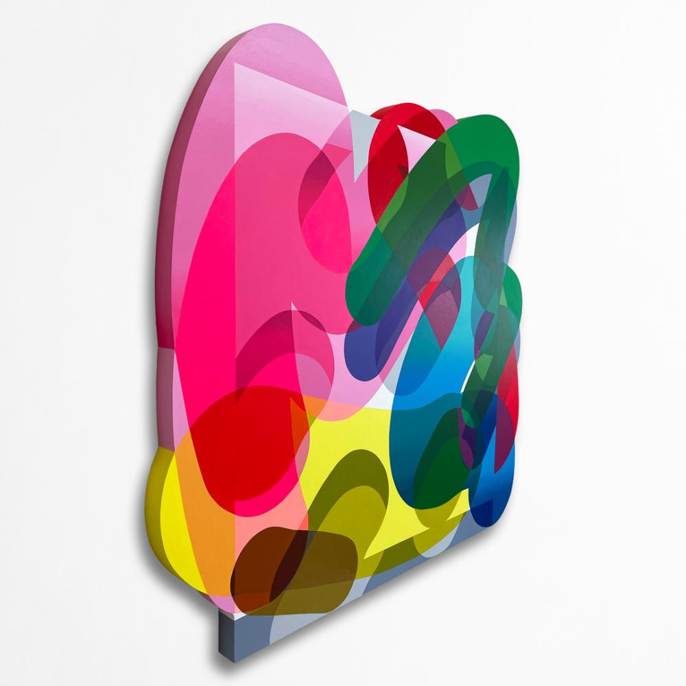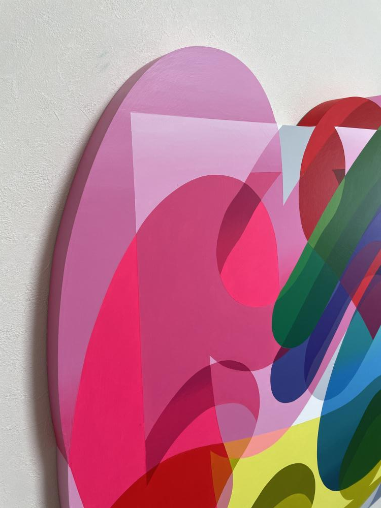 鮮やかな色彩で構成された画面は、レイヤーが積層することで生じる物理的な「重なり」だけでなく、私自身がこれまでに積み重ねてきた時間、カルチャー、スタイル、環境のオーバーラップからも形づくられています。