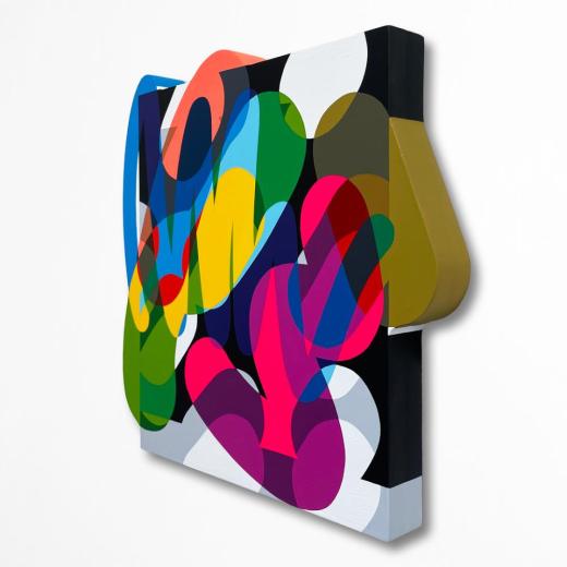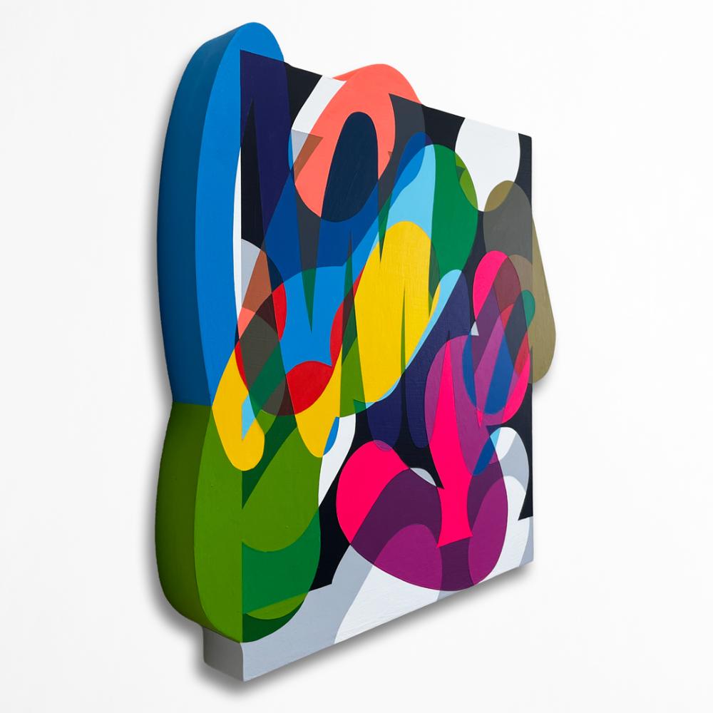 鮮やかな色彩で構成された画面は、レイヤーが積層することで生じる物理的な「重なり」だけでなく、私自身がこれまでに積み重ねてきた時間、カルチャー、スタイル、環境のオーバーラップからも形づくられています。