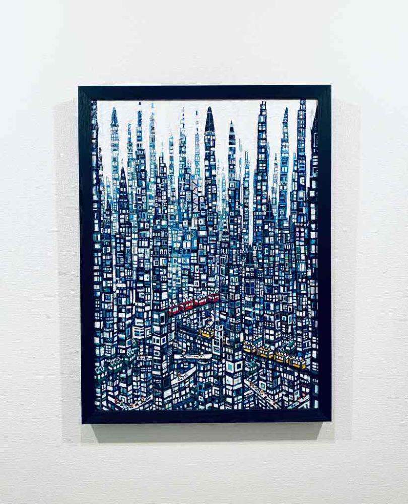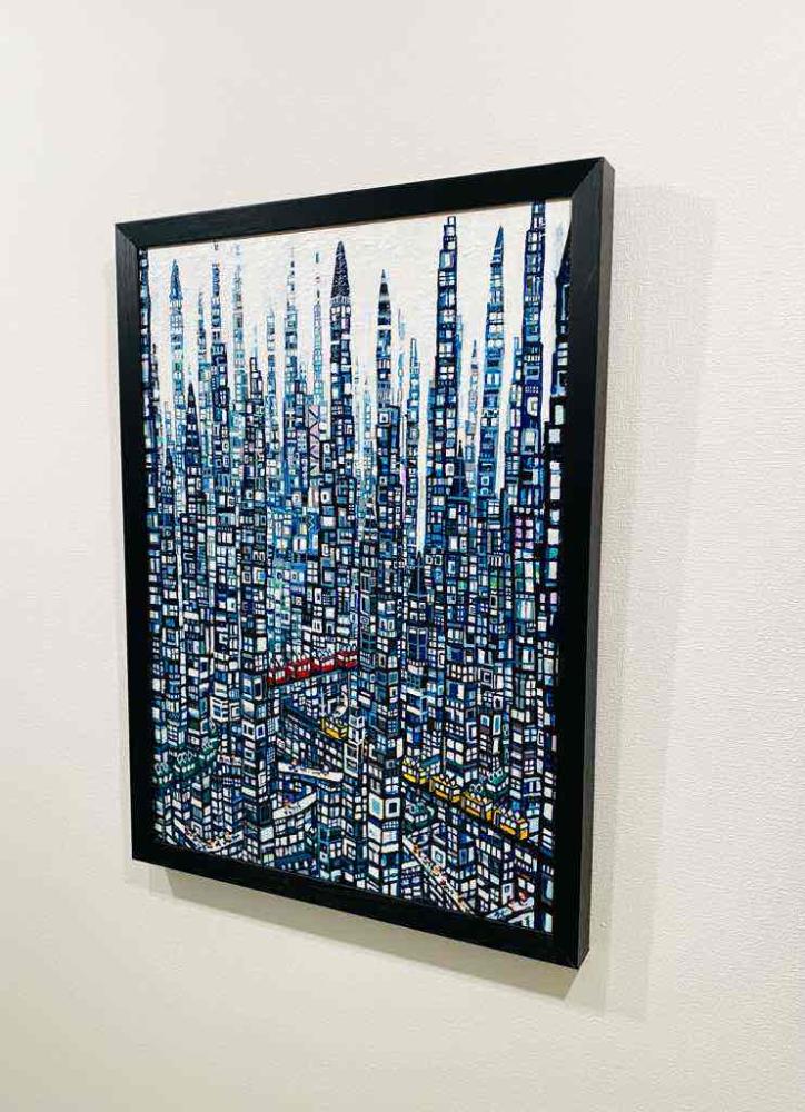 キャンバスに油絵の具で描きました。絵の厚みは約2cmあり額装してあります。