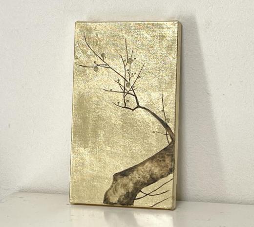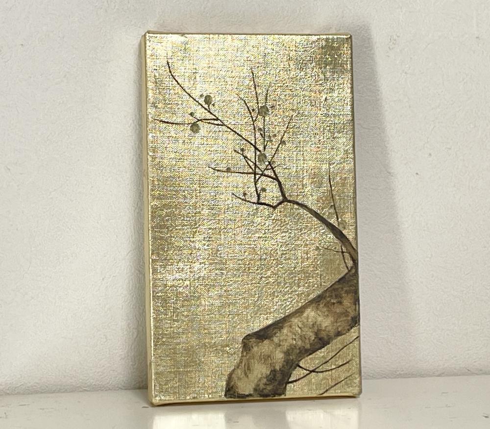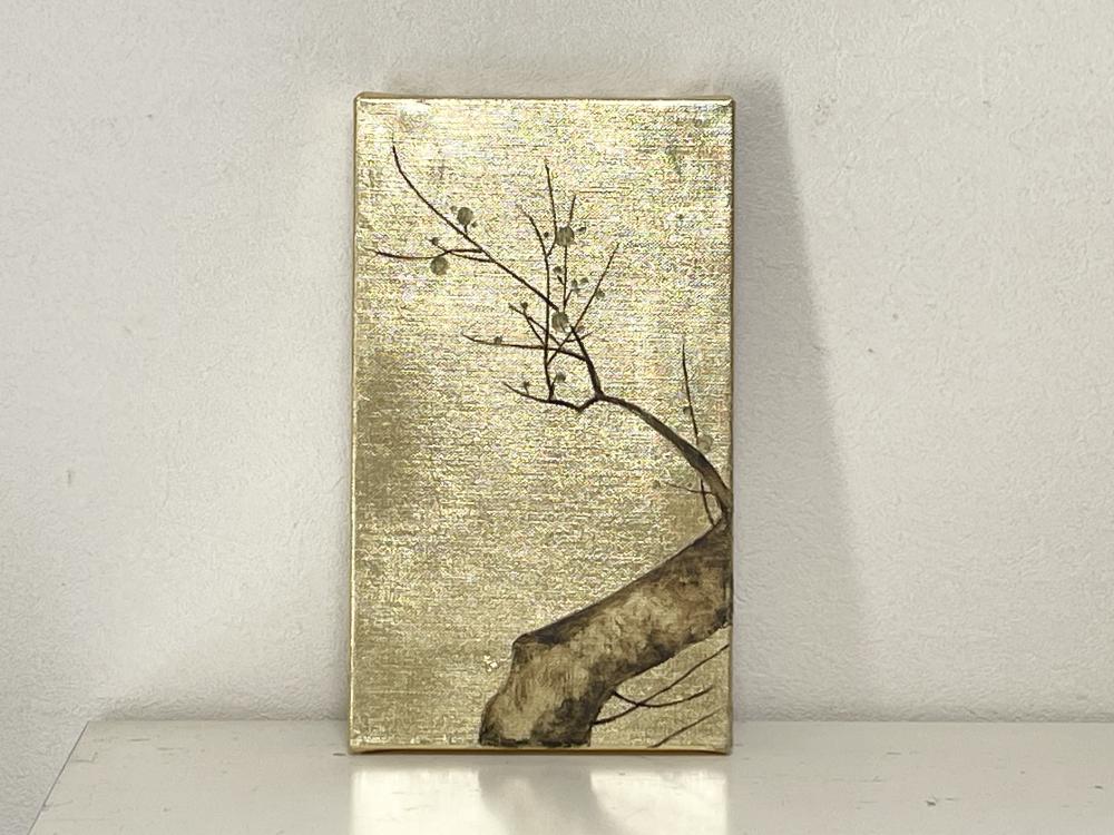 キャンバスに箔を貼り梅の絵を油彩で描きました