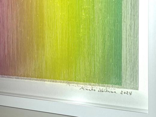Artists who can draw beautiful gradations are hard to find in this world, right? The true beauty of Minako Ishikawa's work is that the lines are drawn with a single thin acrylic stroke, which is arranged among thousands while subtly changing the color scheme. It is not unusual for her to continue drawing a thin line with the same thickness in a straight line without it thickening left and right.It is surely what God makes. If you think that she paints her work with the colors of the rainbow on a transparent acrylic board, she will change it freely, like drawing with blue on a white canvas, and will attract viewers with her gradations. According to Ishikawa, this work is a work that extracts the "light" that fills the air. In addition, Minako Ishikawa's works feel crafty, beautiful and refreshing without being disturbing, giving us a feeling of openness that you will never get bored of even if you look at it many times. It seems that she has been able to earn high praise on international stage by holding exhibitions in Taiwan several times since two years ago. Despite being time consuming work, her work is highly popular because it is still being sold at a relatively affordable price, so it is advisable to purchase it now. She is one of the artists gathering attention who will grow even more in the future.