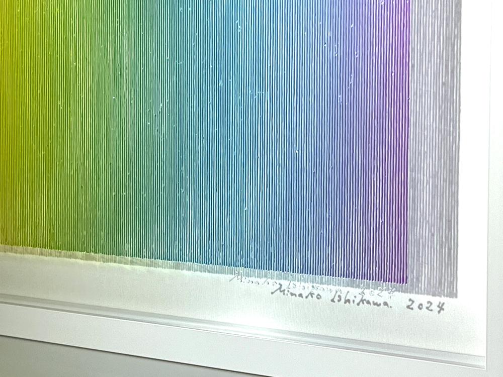 Artists who can draw beautiful gradations are hard to find in this world, right? The true beauty of Minako Ishikawa's work is that the lines are drawn with a single thin acrylic stroke, which is arranged among thousands while subtly changing the color scheme. It is not unusual for her to continue drawing a thin line with the same thickness in a straight line without it thickening left and right.It is surely what God makes. If you think that she paints her work with the colors of the rainbow on a transparent acrylic board, she will change it freely, like drawing with blue on a white canvas, and will attract viewers with her gradations. According to Ishikawa, this work is a work that extracts the "light" that fills the air. In addition, Minako Ishikawa's works feel crafty, beautiful and refreshing without being disturbing, giving us a feeling of openness that you will never get bored of even if you look at it many times. It seems that she has been able to earn high praise on international stage by holding exhibitions in Taiwan several times since two years ago. Despite being time consuming work, her work is highly popular because it is still being sold at a relatively affordable price, so it is advisable to purchase it now. She is one of the artists gathering attention who will grow even more in the future.