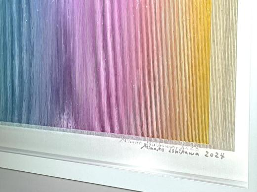The true beauty of Minako Ishikawa's work is that the lines are drawn with a single thin acrylic stroke, which is arranged among thousands while subtly changing the color scheme.