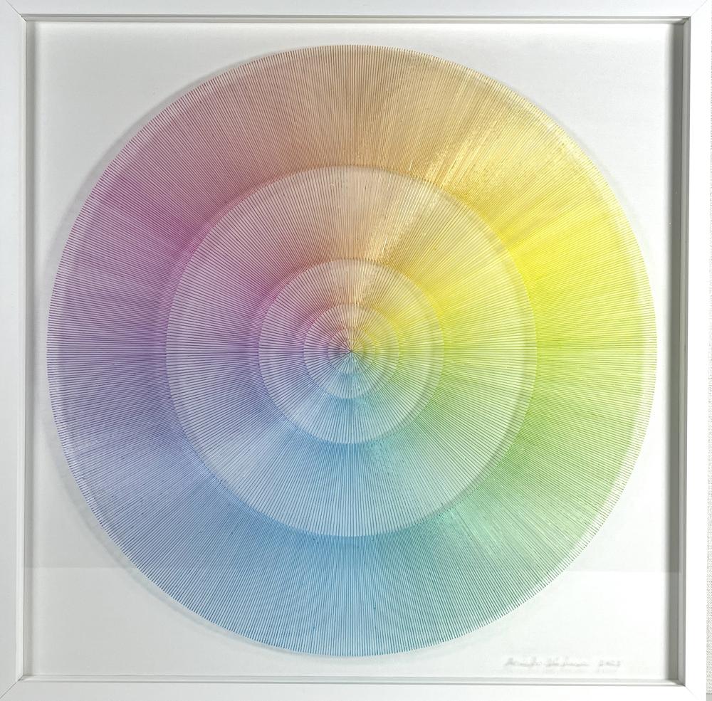 The true beauty of Minako Ishikawa's work is that the lines are drawn with a single thin acrylic stroke, which is arranged among thousands while subtly changing the color scheme.