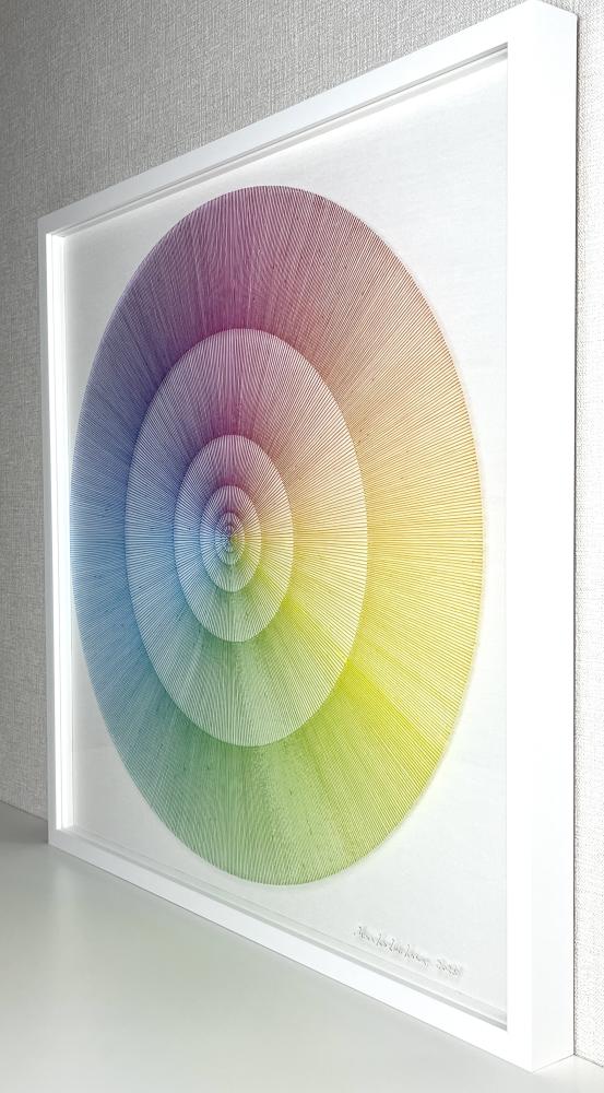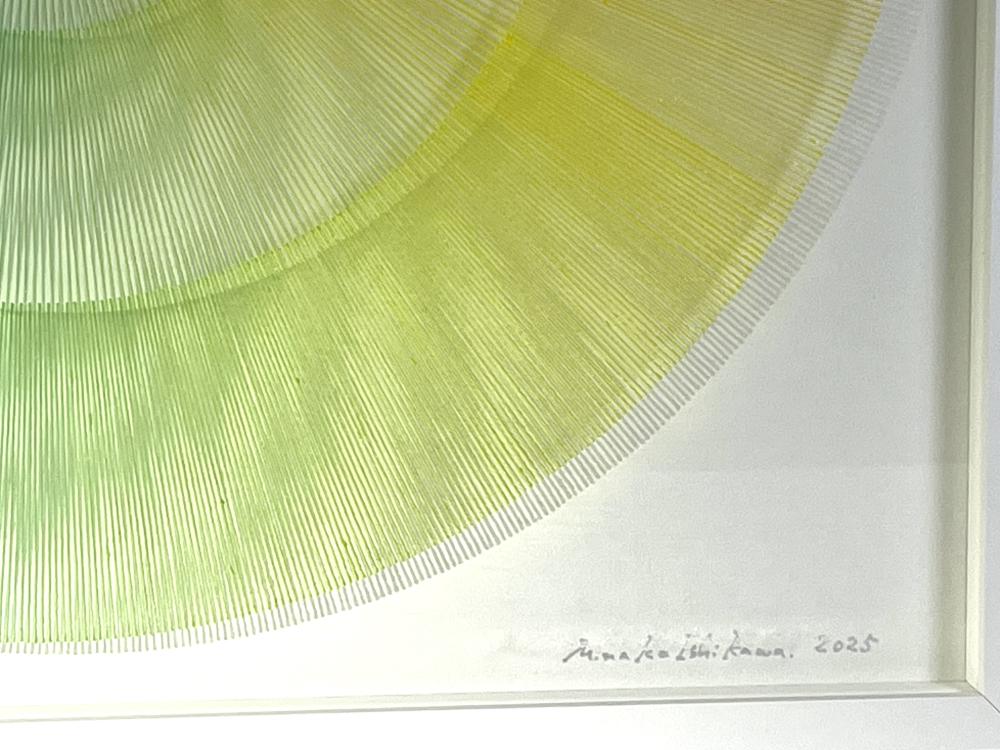 Artists who can draw beautiful gradations are hard to find in this world, right? The true beauty of Minako Ishikawa's work is that the lines are drawn with a single thin acrylic stroke, which is arranged among thousands while subtly changing the color scheme. It is not unusual for her to continue drawing a thin line with the same thickness in a straight line without it thickening left and right.It is surely what God makes. If you think that she paints her work with the colors of the rainbow on a transparent acrylic board, she will change it freely, like drawing with blue on a white canvas, and will attract viewers with her gradations. According to Ishikawa, this work is a work that extracts the "light" that fills the air. In addition, Minako Ishikawa's works feel crafty, beautiful and refreshing without being disturbing, giving us a feeling of openness that you will never get bored of even if you look at it many times. It seems that she has been able to earn high praise on international stage by holding exhibitions in Taiwan several times since two years ago. Despite being time consuming work, her work is highly popular because it is still being sold at a relatively affordable price, so it is advisable to purchase it now. She is one of the artists gathering attention who will grow even more in the future.