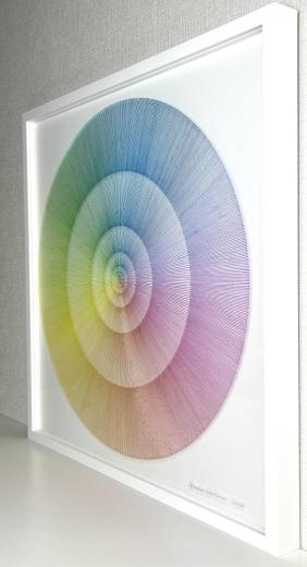 Artists who can draw beautiful gradations are hard to find in this world, right? The true beauty of Minako Ishikawa's work is that the lines are drawn with a single thin acrylic stroke, which is arranged among thousands while subtly changing the color scheme. It is not unusual for her to continue drawing a thin line with the same thickness in a straight line without it thickening left and right.It is surely what God makes. If you think that she paints her work with the colors of the rainbow on a transparent acrylic board, she will change it freely, like drawing with blue on a white canvas, and will attract viewers with her gradations. According to Ishikawa, this work is a work that extracts the "light" that fills the air. In addition, Minako Ishikawa's works feel crafty, beautiful and refreshing without being disturbing, giving us a feeling of openness that you will never get bored of even if you look at it many times. It seems that she has been able to earn high praise on international stage by holding exhibitions in Taiwan several times since two years ago. Despite being time consuming work, her work is highly popular because it is still being sold at a relatively affordable price, so it is advisable to purchase it now. She is one of the artists gathering attention who will grow even more in the future.