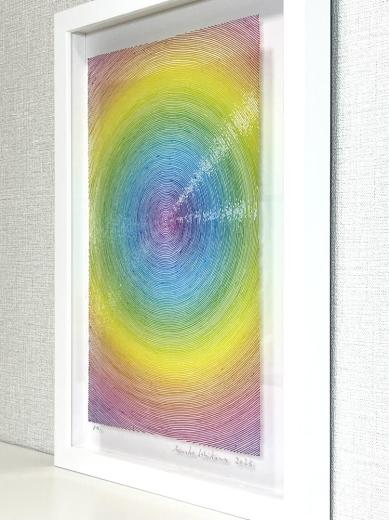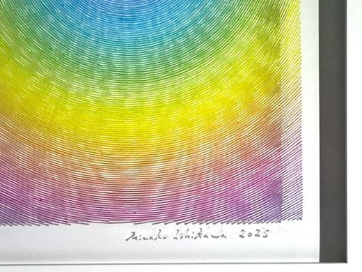 The true beauty of Minako Ishikawa's work is that the lines are drawn with a single thin acrylic stroke, which is arranged among thousands while subtly changing the color scheme.
