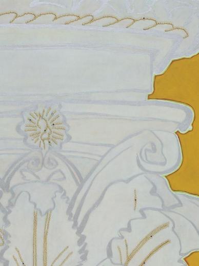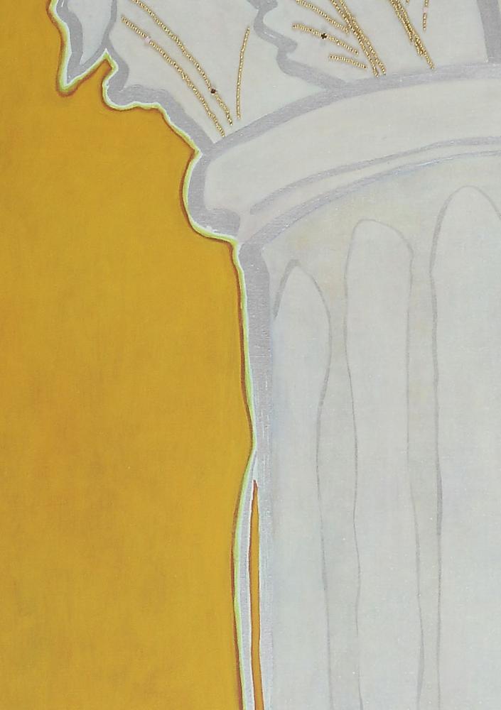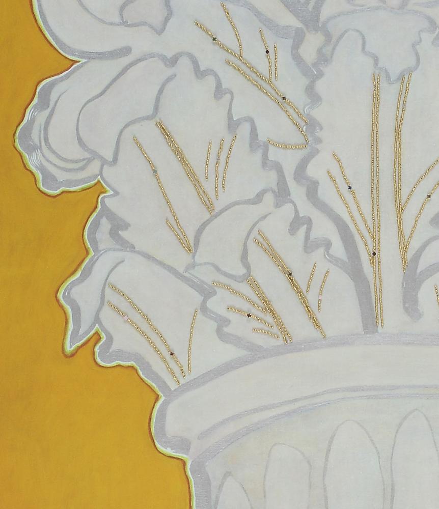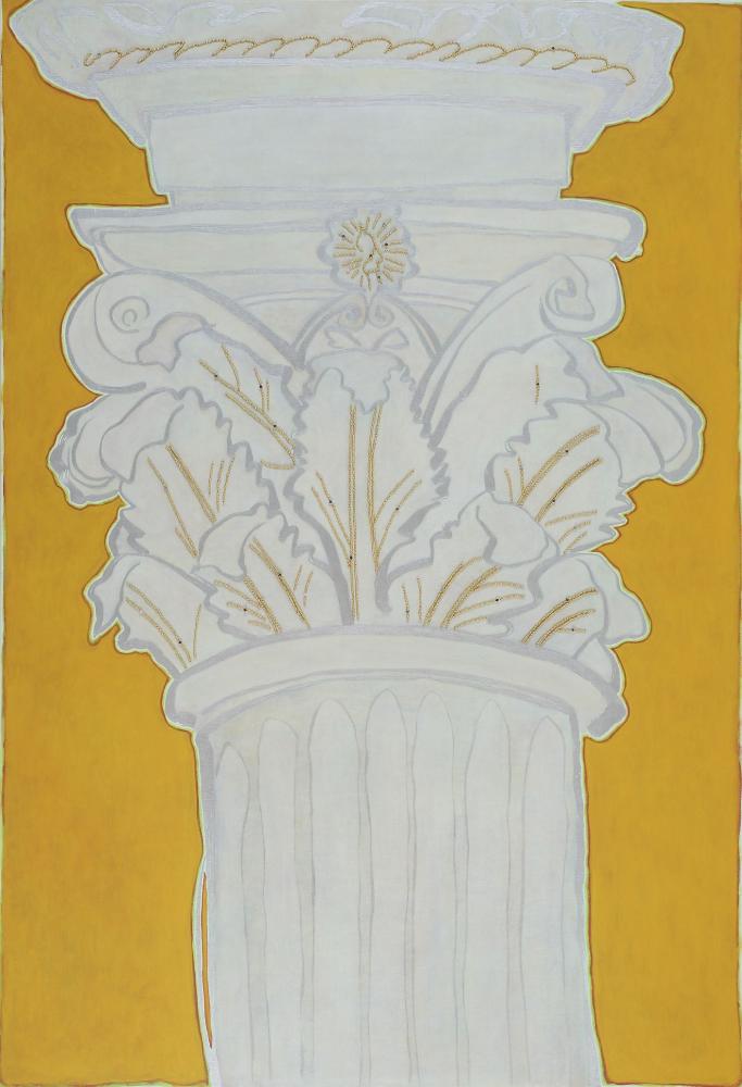 どこの国の柱だったか…ドイツかイタリアかイギリスか…ヨーロッパの昔の建物の柱。 細部にまでこだわりを持ち美しい柱。 昔の人たちの美意識や技術は今でも通じる価値があるもの。 私もそんな残る作品を創り続けたい。 このころの作品はまだサインの場所を試行錯誤していて、キャンバスの裏にサインがあります。
